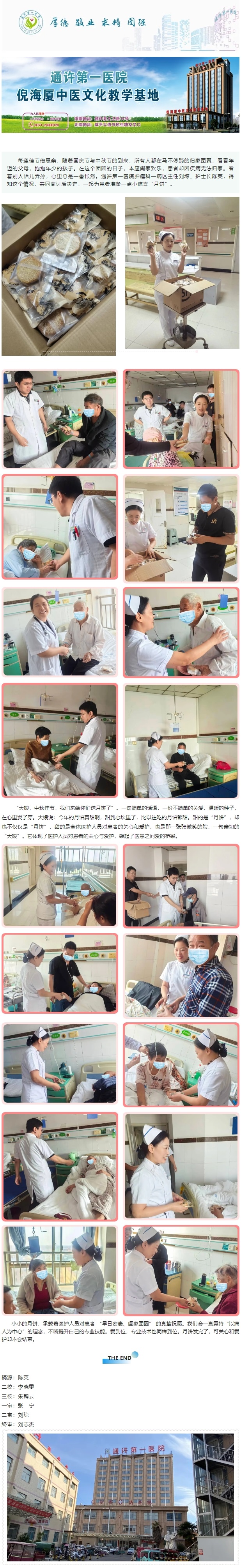 双节暖心相伴——通许第一医院肿瘤科一病区为住院患者送月饼,共庆佳节!