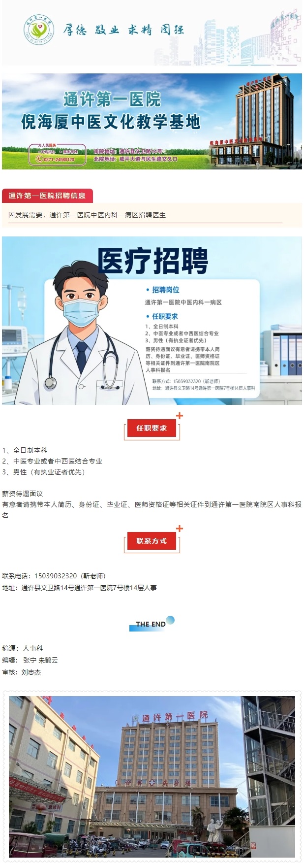 【招聘】通许第一医院中医内科一病区面向社会公开招聘