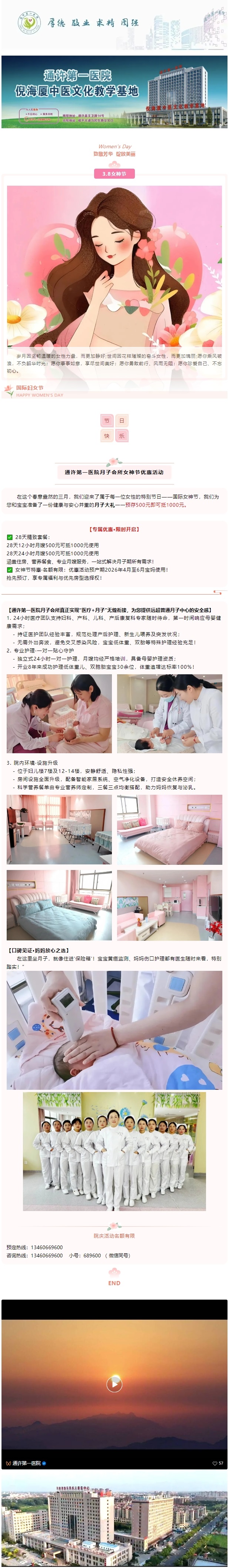 【情暖三月丨 约惠女神】通许第一医院月子会所女神节优惠活动开始了!
